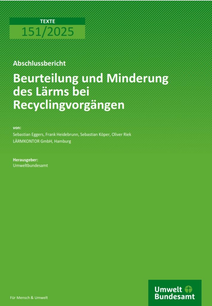 12/2025: Vom Umweltbundesamt (UBA) ist ein Bericht unter dem Titel ‚Beurteilung und Minderung des Lärms bei Recyclingvorgängen‘ veröffentlicht worden. Es werden hier u.a. neue Emissionskennnwerte für das Entleeren von Glas- und Papiercontainern dokumentiert.
