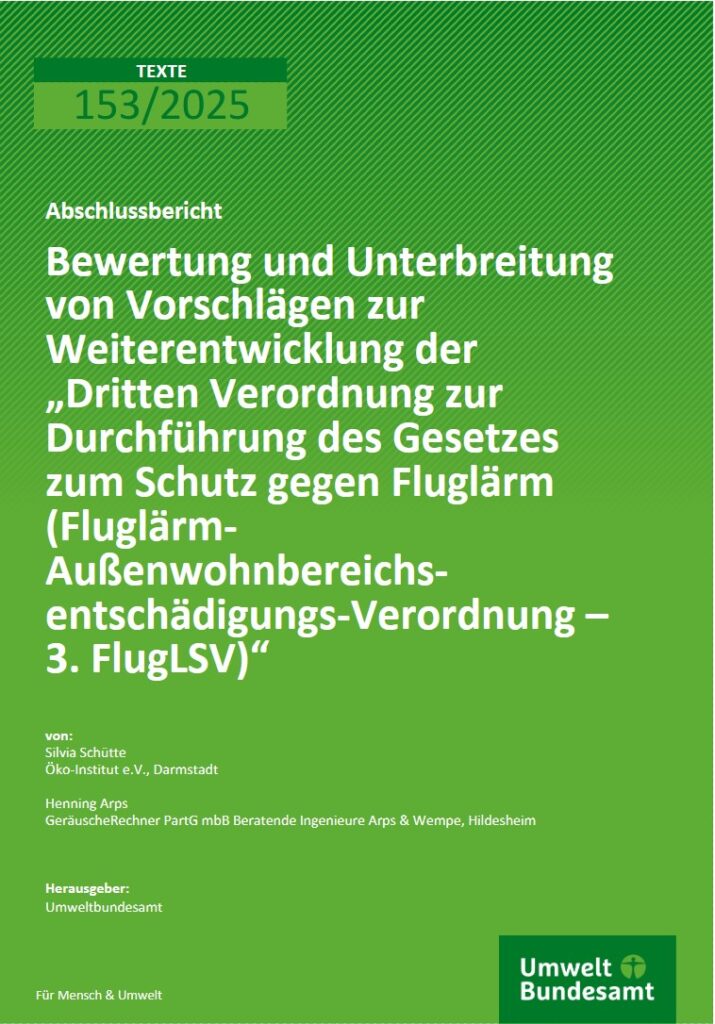 12/2025: Das Umweltbundesamt (UBA) hat den Abschlussbericht der Studie zur Bewertung und Entwicklung von Empfehlungen zur Fortschreibung der 3.FlugLSV veröffentlicht. Das Büro GeräuscheRechner war als Projektpartner vom Öko-Institut e.V. daran beteiligt.
